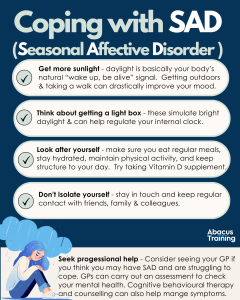 SAD isn’t just “the winter blues.” It’s a real, recognised mental-health condition. If someone you care about is down, withdrawn, sleeping/eating a lot (or too little), check-in. Early support can make a big difference. Recognising it, talking about it, seeking help — that’s how we keep people safe.